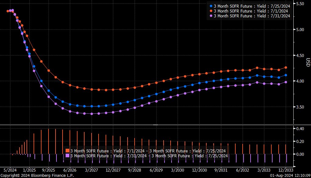 SOFR curves moved lower— pricing lower interest rates and lower growth into 2026: