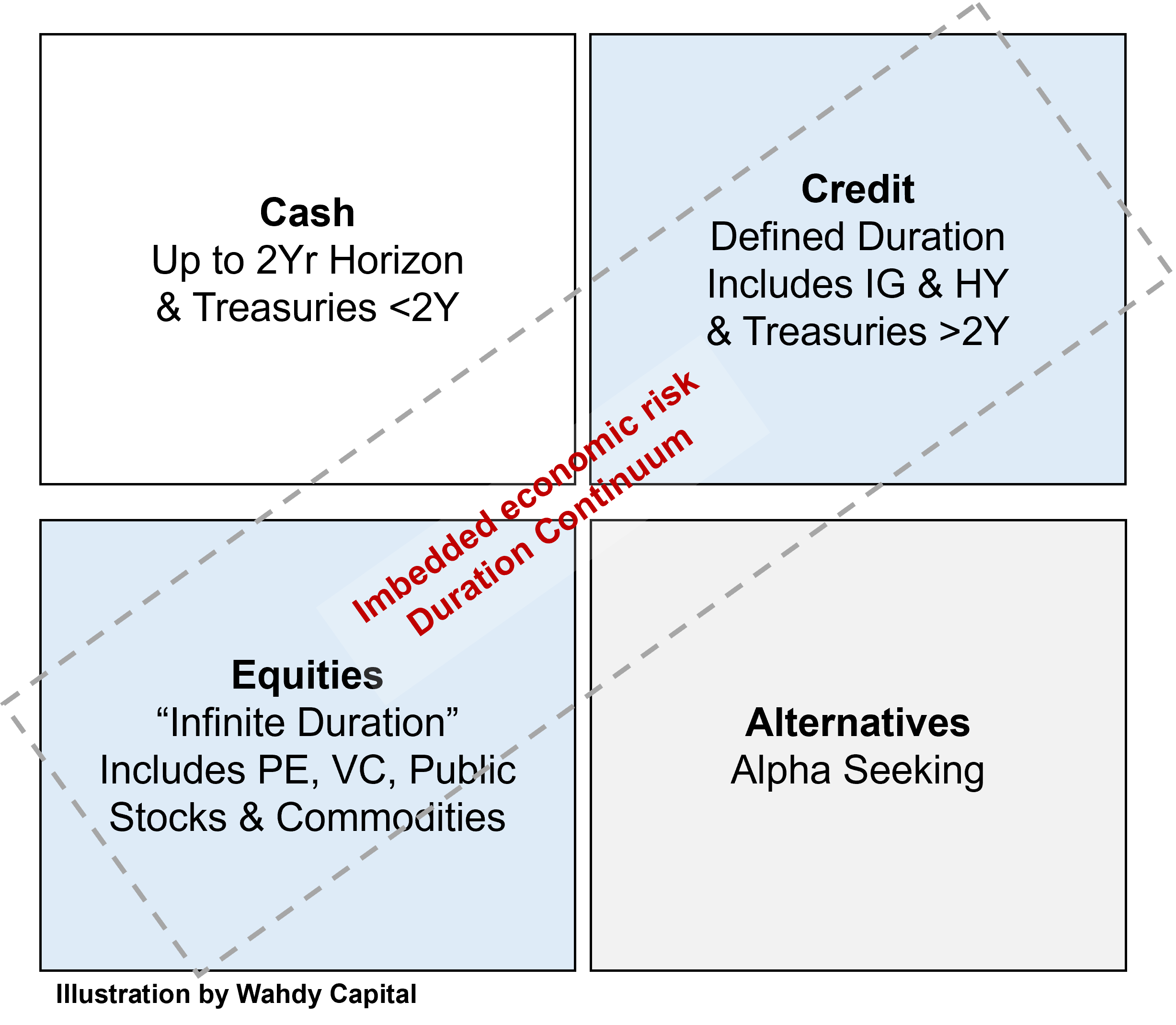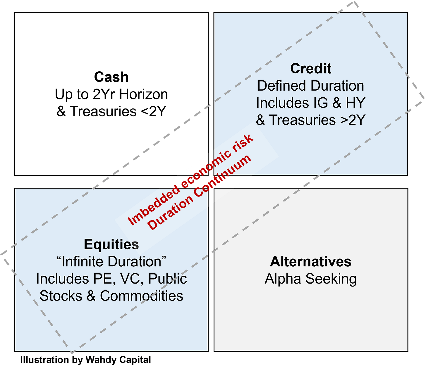 Economic risk — which includes the returns from equities, commodities, and credit where returns are driven by the business and interest rate cycle